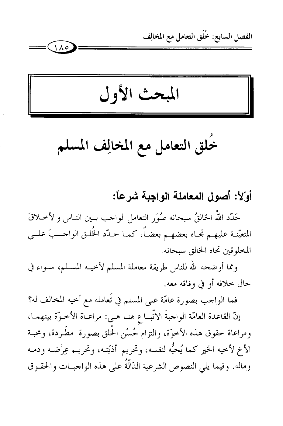 المبحث الأول: خُلق التعامل مع المخالِف المسلم
