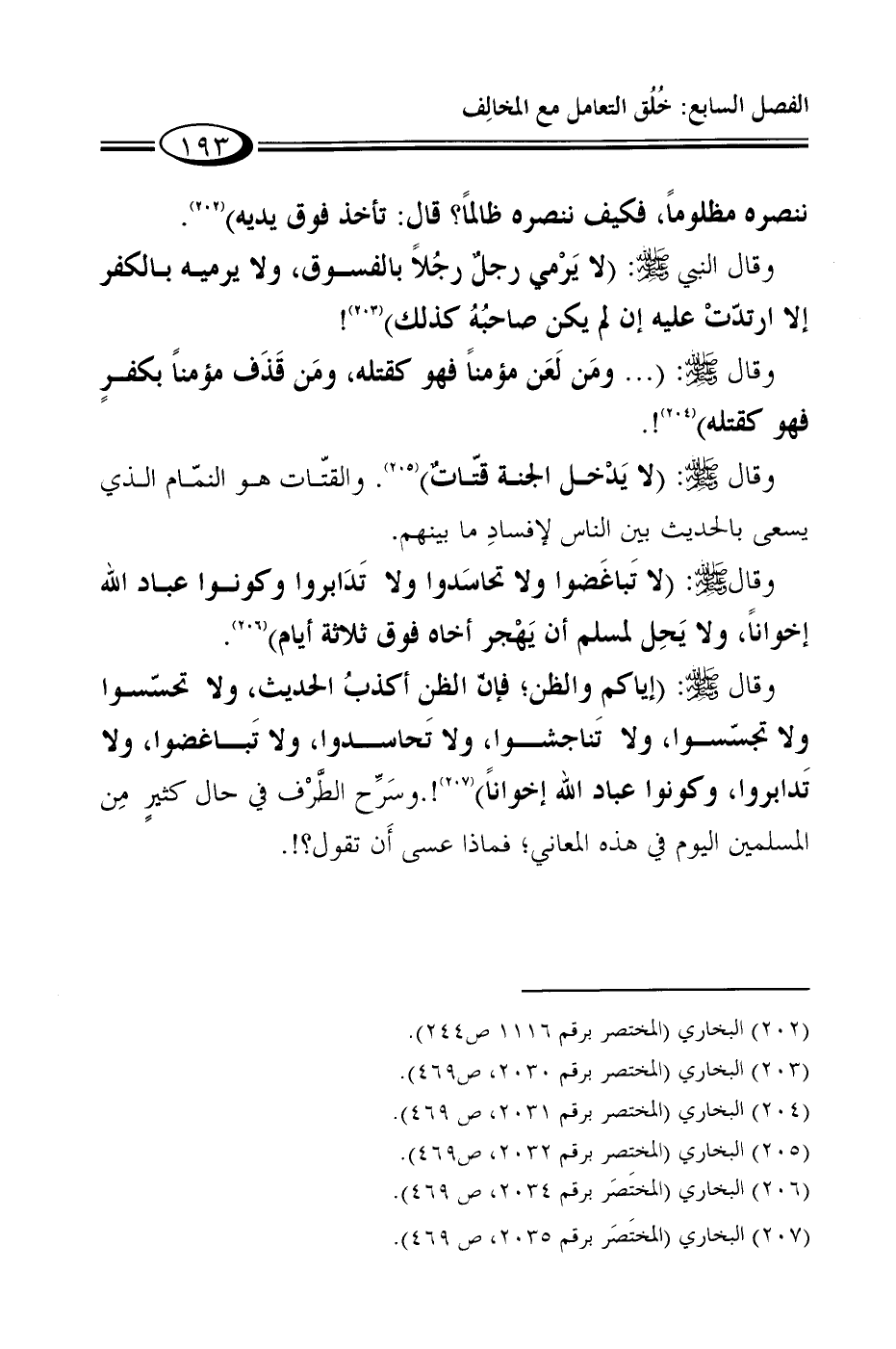 وقال صلى الله عليه وسلم: "إياكم والظن؛ فإنّ الظن أكذبُ الحديث، ولا تحسّسوا ولا تجسّسوا، ولا تَناجشوا، ولا تَحاسدوا، ولا تَباغضوا، ولا تَدابروا، وكونوا عباد الله إخواناً" 6!.وسَرِّح الطَّرْف في حال كثيرٍ مِن المسلمين اليوم في هذه المعاني؛ فماذا عسى أَن تقول؟!.