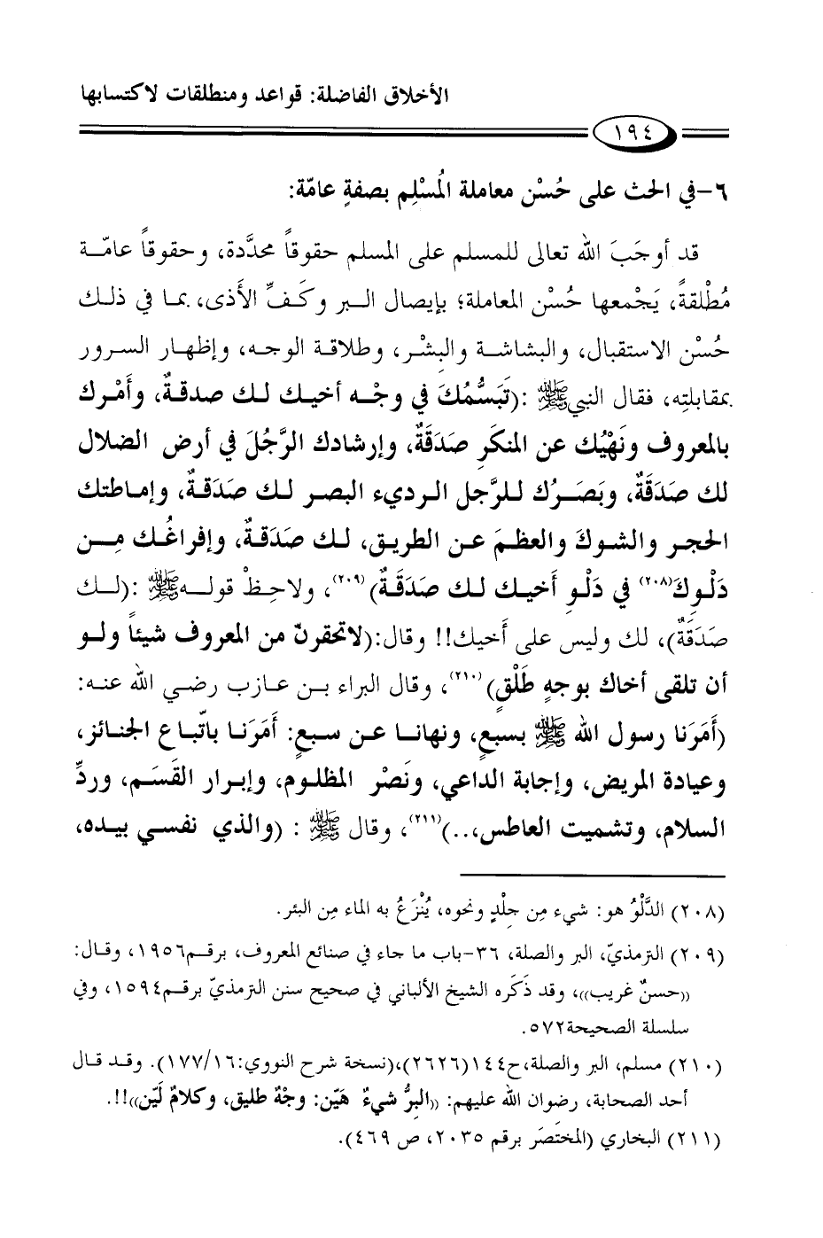 3 مسلم، البر والصلة، ح1442626،نسخة شرح النووي:16/177. وقد قال أحد الصحابة، رضوان الله عليهم: البِرُّ شيءٌ هَيّن: وجْهٌ طليق، وكلامٌ لَيّن!!.