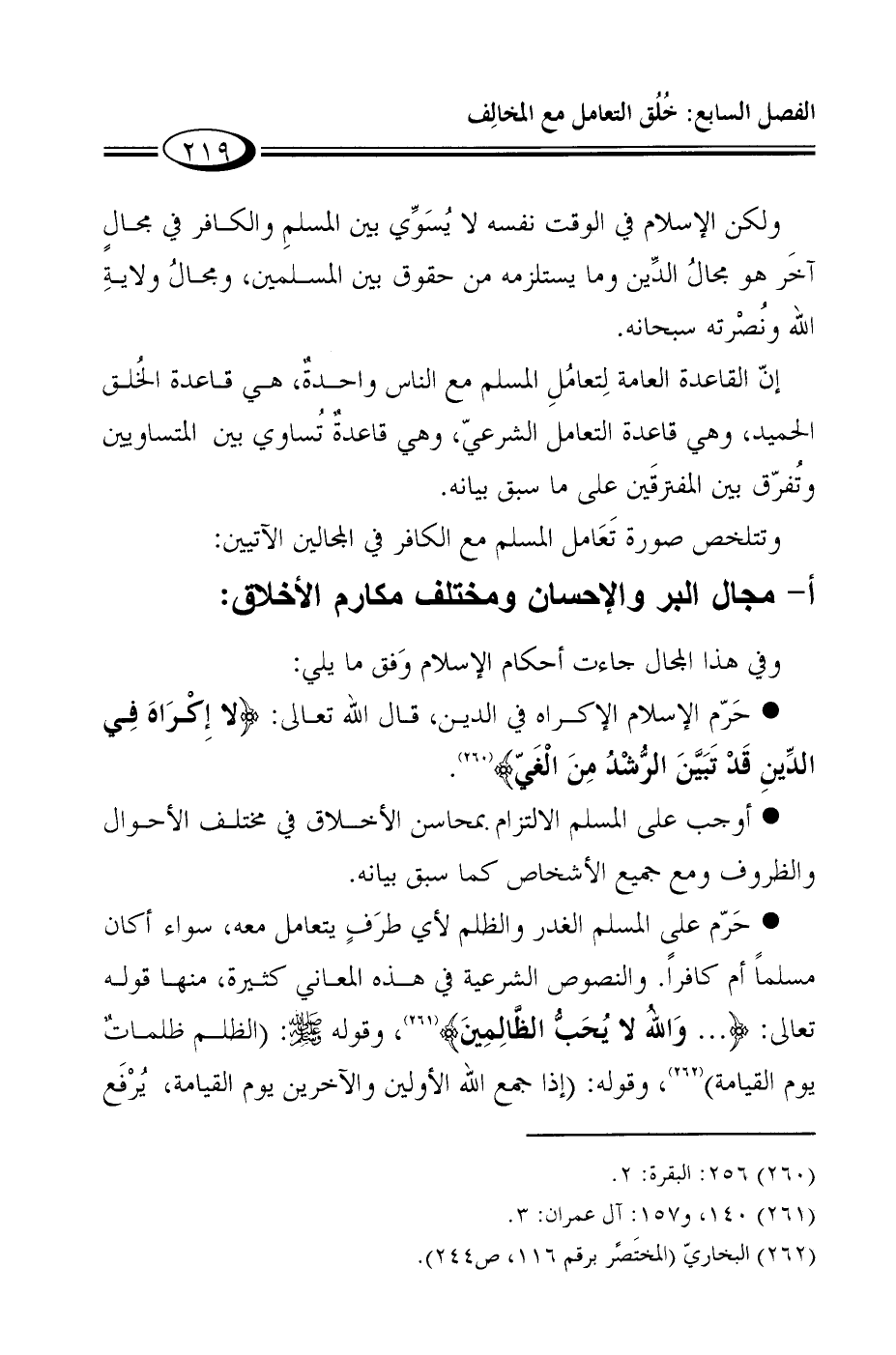 - ووجْهٍ هو بضدّ ذلك، لا يندرج إلا في مساوئ الأخلاق، للتعامل مع الكافر.