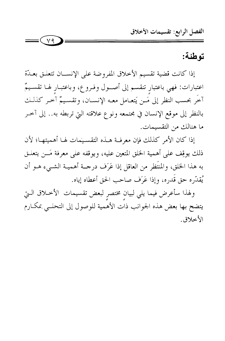 الفصل الرابع: تقسيم الأخلاق