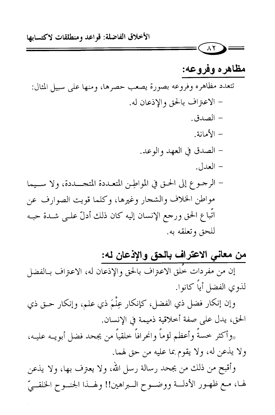 إن من مفردات خُلق الاعتراف بالحق والإذعان له، الاعتراف بالفضل لذوي الفضل أياً كانوا.