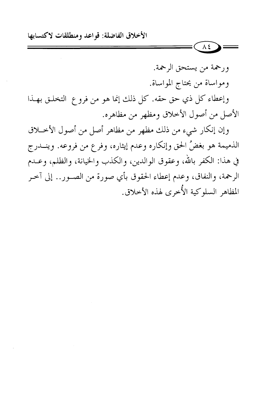 وإعطاء كل ذي حق حقه. كل ذلك إنما هو من فروع التخلق بهذا الأصل من أصول الأخلاق ومظهر من مظاهره.