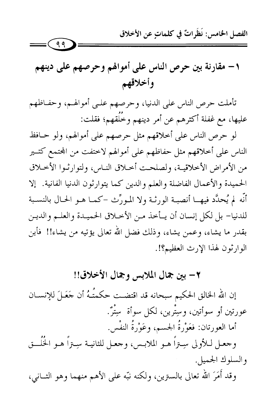1- موازَنةٌ بين حرص الناس على أموالهم وحرصهم على دينهم وأخلاقهم.