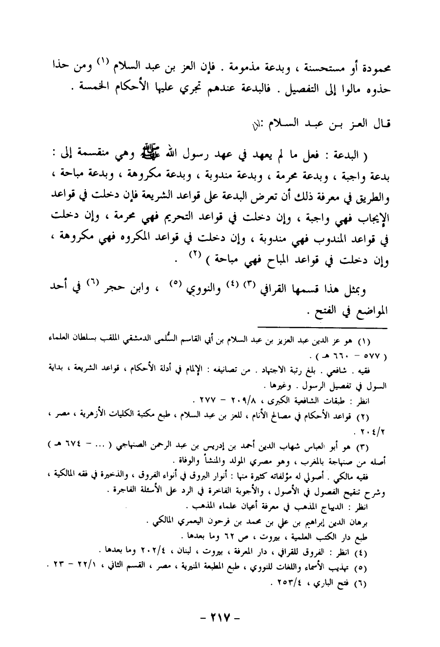 (¬1) هو عز الدين عبد العزيز بن عبد السلام بن أبي القاسم السلمي الدمشقي المقلب بسلطان العلماء (577 - 660هـ) . فقيه. شافعي. بلغ رتبة الاجتهاد. من تصانيفه: الإلمام في أدلة الأحكام، قواعد الشريعة، بداية السول في تفصيل الرسول. وغيرها. انظر: طبقات الشافعية الكبرى، 8 / 209 - 277.