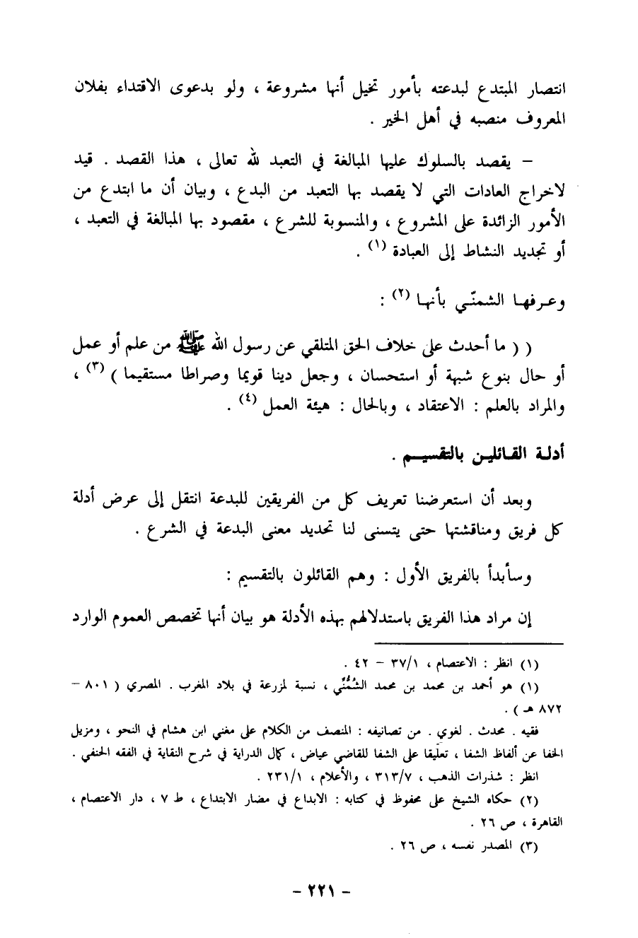 (¬3) حكاه الشيخ على محفوظ في كتابه: الإبداع في مضار الابتداع، ط 7، دار الاعتصام، القاهرة، ص 26.
