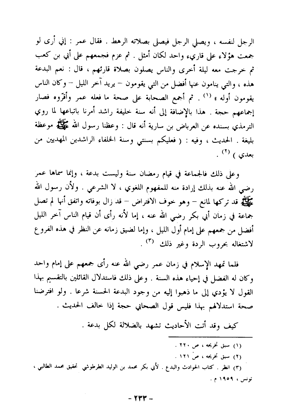 (¬3) انظر: كتاب الحوادث والبدع. لأبي بكر محمد بن الوليد الطرطوشي تحقيق محمد الطالبي، تونس، 1959 م.