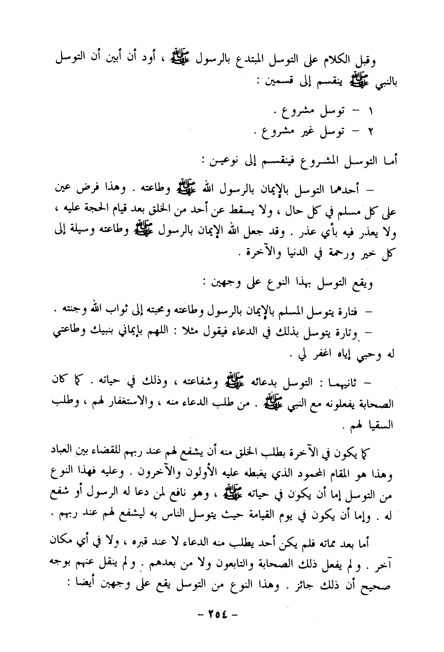 وقبل الكلام على التوسل المبتدع بالرسول صلى الله عليه وسلم، أود أن أبين أن التوسل بالنبي صلى الله عليه وسلم ينقسم إلى قسمين: