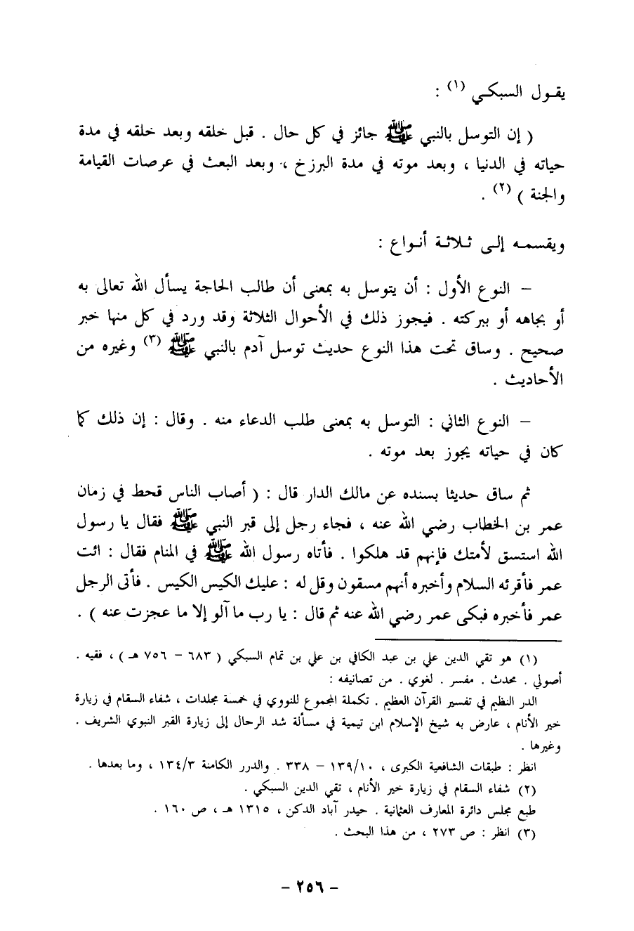 (¬2) شفاء السقام في زيارة خير الأنام، تقي الدين السبكي.