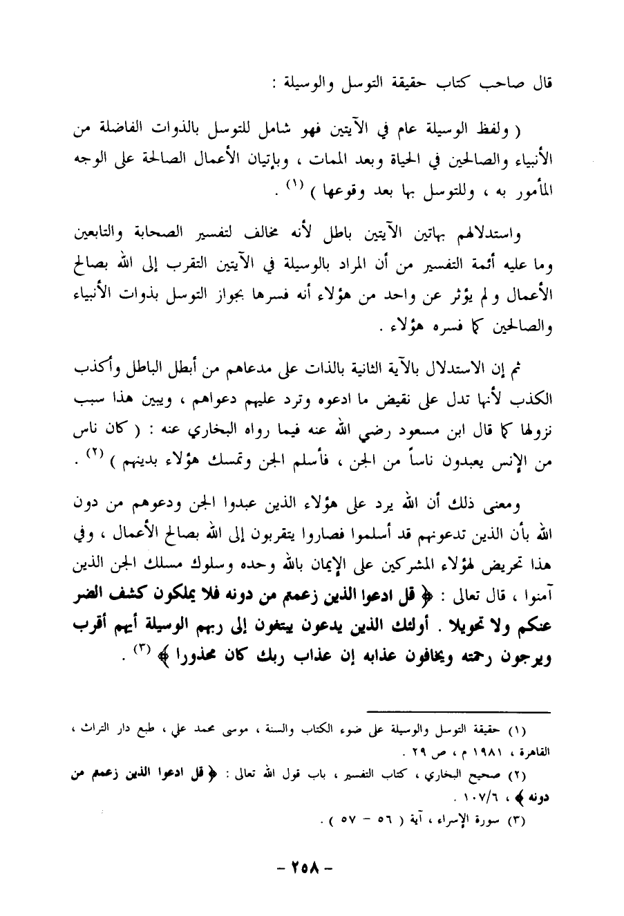 (¬1) حقيقة التوسل والوسيلة على ضوء الكتاب والسنة، موسى محمد علي، طبع دار التراث، القاهرة، 1981م، ص29.