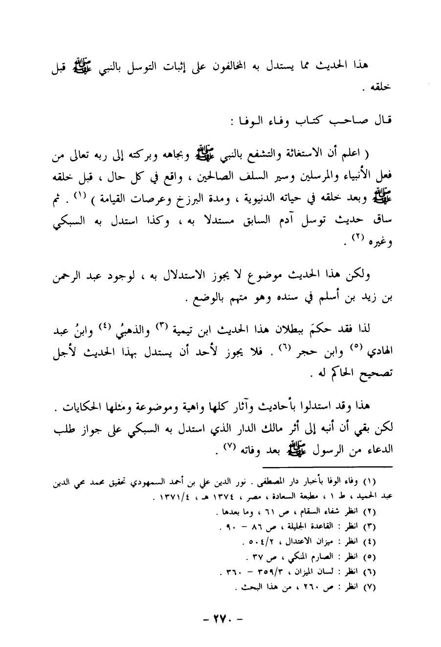 (¬2) انظر شفاء السقام، ص 61، وما بعدها.
