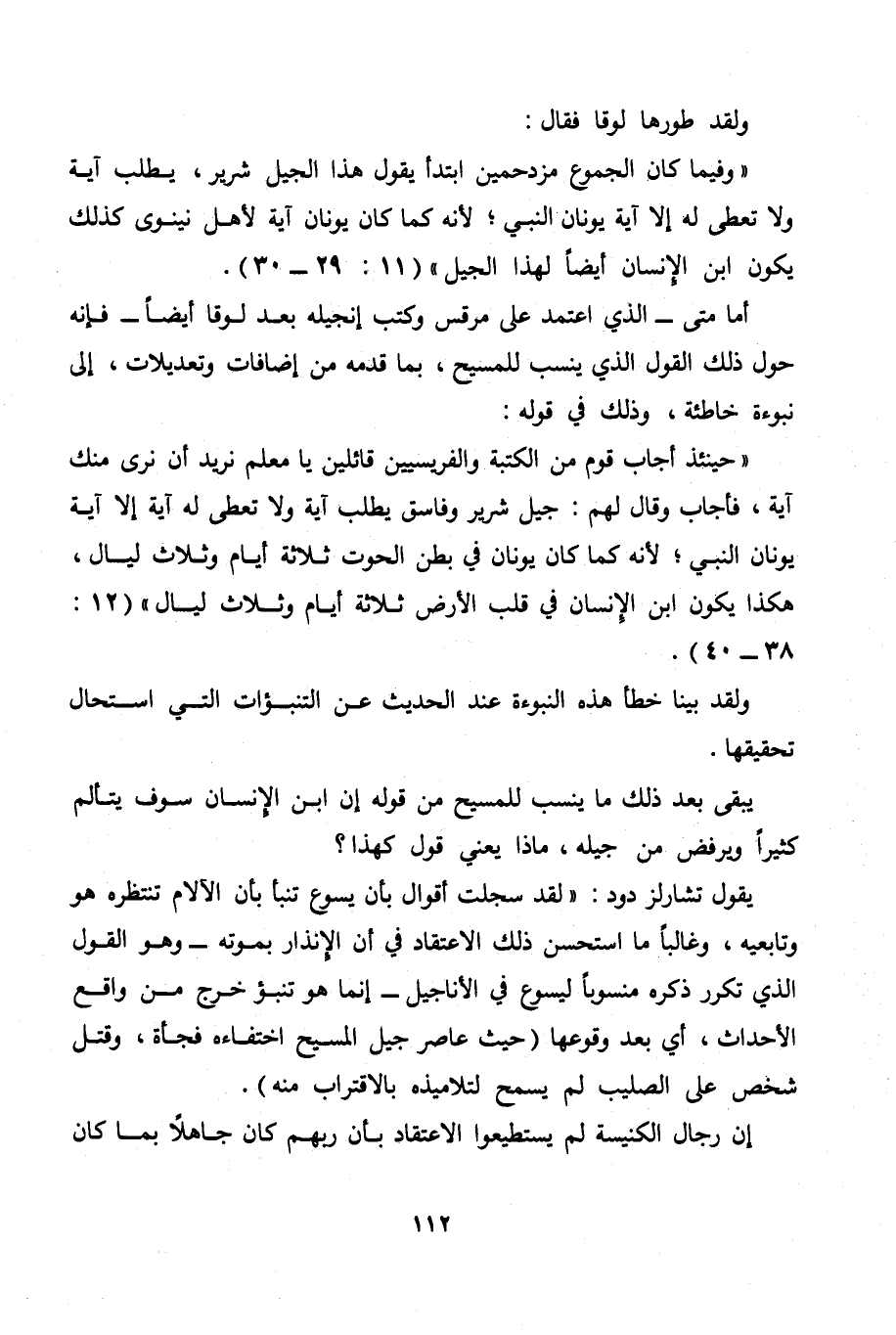 " وفيما كان الجموع مزدحمين ابتدأ يقول هذا الجيل شرير، يطلب آية ولا تعطى له إلا آية يونان النبي؛ لأنه كما كان يونان آية لأهل نينوى كذلك يكون ابن الإنسان أيضا لهذا الجيل " (11: 29 - 30) .