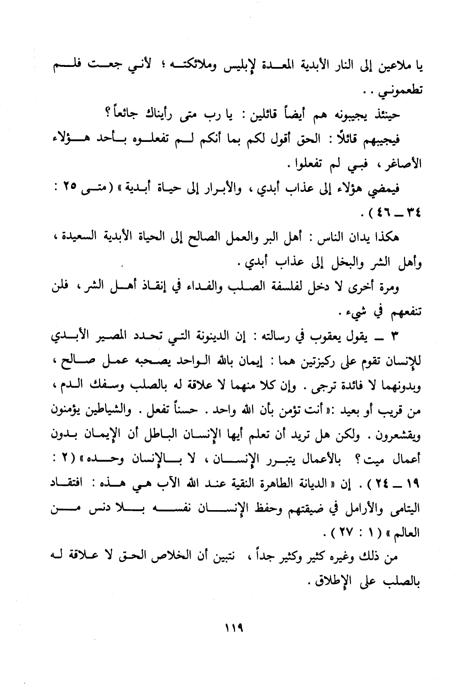 ومرة أخرى لا دخل لفلسفة الصلب والفداء في إنقاذ أهل الشر، فلن تنفعهم في شيء.