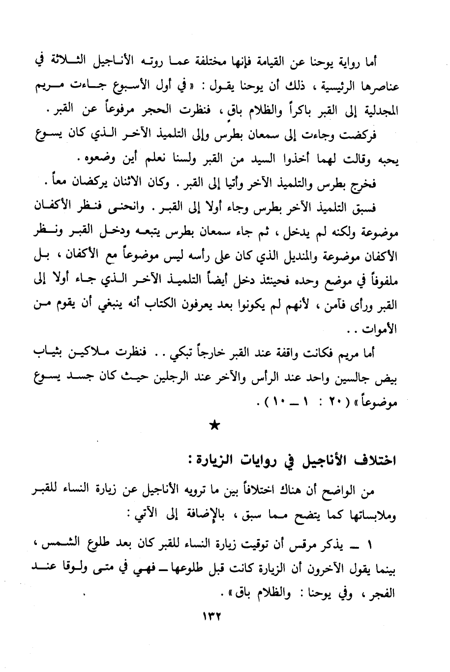 فسبق التلميذ الآخر بطرس وجاء أولا إلى القبر. وانحنى فنظر الأكفان موضوعة ولكنه لم يدخل، ثم جاء سمعان بطرس يتبعه ودخل القبر ونظر الأكفان موضوعة والمنديل الذي كان على رأسه ليس موضوعاً مع الأكفان، بل ملفوفا في موضع وحده فحينئذ دخل أيضا التلميذ الآخر الذي جاء أولا إلى القبر ورأى فآمن، لأنهم لم يكونوا بعد يعرفون الكتاب أنه ينبغي أن يقوم من الأموات. .