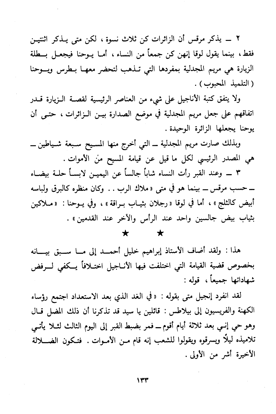 هذا: ولقد أضاف الأستاذ إبراهيم خليل أحمد إلى ما سبق بيانه بخصوص قضية القيامة التي اختلفت فيها الأناجيل اختلافاً يكفي لرفض شهاداتها جميعاً، قوله: