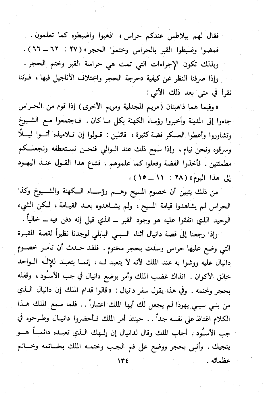 من ذلك يتبين أن خصوم المسيح وهم رؤساء الكهنة والشيوخ وكذا الحراس لم يشاهدوا قيامة المسيح، ولم يشاهدوه بعد القيامة، لكن الشيء الوحيد الذي اتفقوا عليه هو وجود القبر - الذي قيل إنه دفن فيه - خالياً.