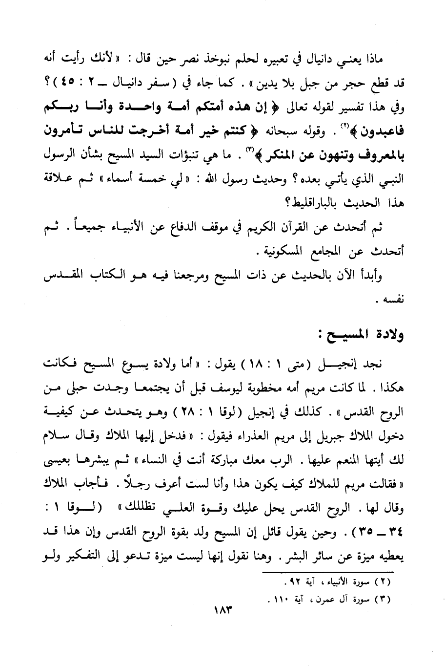 نجد إنجيل (متى 1: 18) يقول: (أما ولادة يسوع المسيح فكانت هكذا. لما كانت مريم أمه مخطوبة ليوسف قبل أن يجتمعا وجدت حبلى من الروح القدس ". كذلك في إنجيل (لوقا 1: 28) وهو يتحدث عن كيفية دخول الملاك جبريل إلى مريم العذراء فيقول: " فدخل إليها الملاك وقال سلام لك أيتها المنعم عليها. الرب معك مباركة أنت في النساء " ثم يبشرها بعيسى " فقالت مريم للملاك كيف يكون هذا وأنا لست أعرف رجلًا. فأجاب الملاك وقال لها. الروح القدس يحل عليك وقوة العلي تظللك " (لوقا 1: 34 - 35) . وحين يقول قائل إن المسيح ولد بقوة الروح القدس وإن هذا قد يعطيه ميزة عن سائر البشر. وهنا نقول إنها ليست ميزة تدعو إلى التفكير ولو