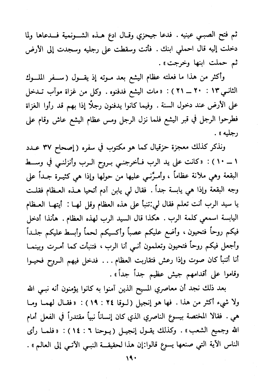 ونذكر كذلك معجزة حزقيال كما هو مكتوب في سفره (إصحاح 37 عدد 1 - 10) : " كانت على يد الرب فأخرجني بروح الرب وأنزلني في وسط البقعة وهي ملآنة عظاما، وأمرني عليها من حولها وإذا هي كثيرة جدا على وجه البقعة وإذا هي يابسة جدا. فقال لي يا ابن آدم أتحيا هذه العظام فقلت يا سيد الرب أنت تعلم فقال لي: تنبأ على هذه العظام وقل لها: أيتها العظام اليابسة اسمعي كلمة الرب. هكذا قال السيد الرب لهذه العظام وقل لها. هأنذا أدخل فيكم روحا فتحيون، وأضع عليكم عصبا وأكسيكم لحما وأبسط عليكم جلدا وأجعل فيكم روحا فتحيون وتعلمون أني أنا الرب، فتنبأت كما أمرت وبينما أنا أتنبأ كان صوت وإذا رعش فتقاربت العظام. . . فدخل فيهم الروح فحيوا وقاموا على أقدامهم جيش عظيم جدا جدا ".