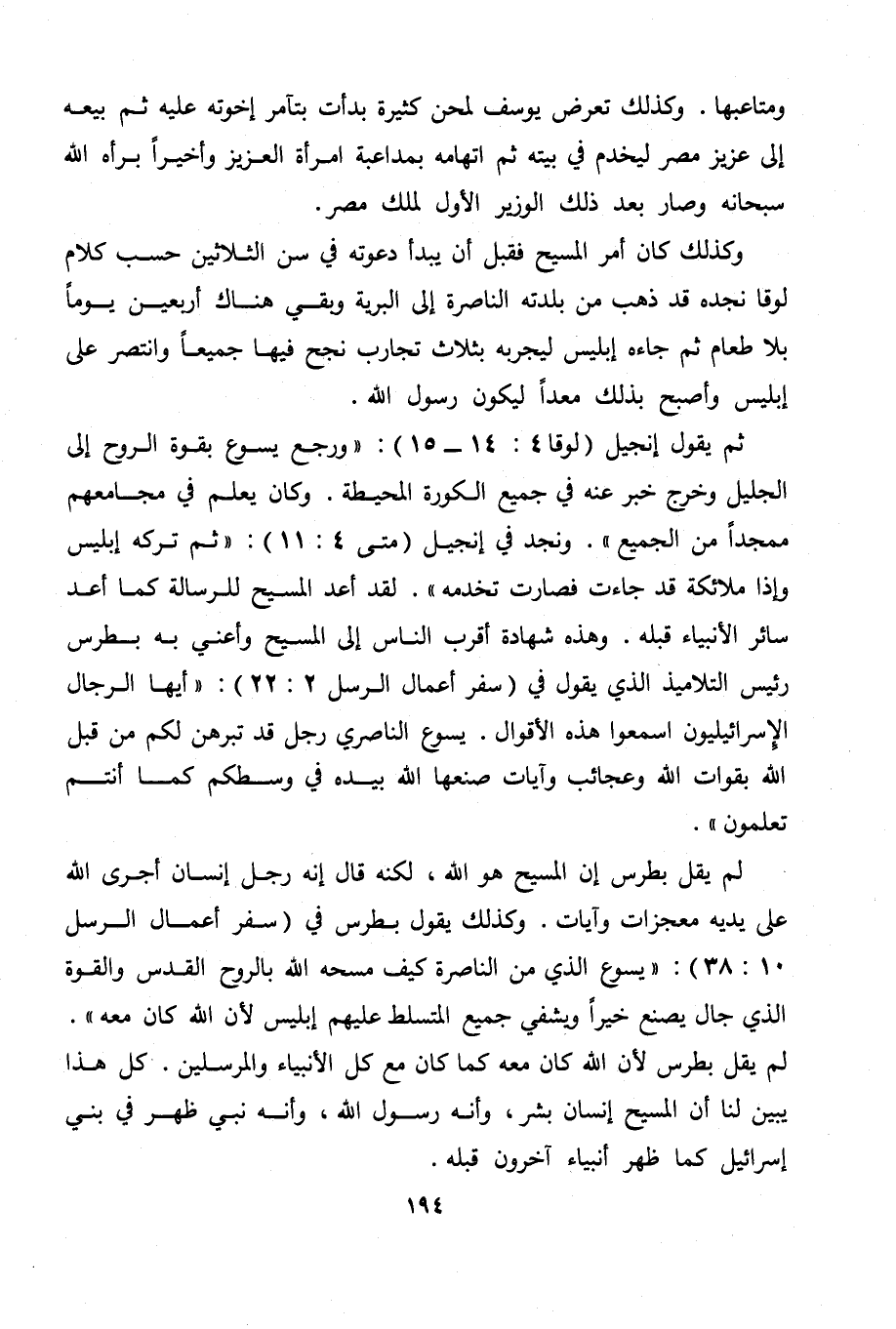 ثم يقول إنجيل (لوقا 4: 14-15) : " ورجع يسوع بقوة الروح إلى الجليل، وخرج خبر عنه في جميع الكورة المحيطة. وكان يعلم في مجامعهم ممجدًا من الجميع ". ونجد في إنجيل (متى 4: 11) : " ثم تركه إبليس وإذا ملائكة قد جاءت فصارت تخدمه ". لقد أعد المسيح للرسالة كما أعد سائر الأنبياء قبله. وهذه شهادة أقرب الناس إلى المسيح وأعني به بطرس رئيس التلاميذ الذي يقول في (سفر أعمال الرسل 2: 22) : " أيها الرجال الإسرائيليون اسمعوا هذه الأقوال. يسوع الناصري رجل قد تبرهن لكم من قبل الله بقوات الله وعجائب وآيات صنعها الله بيده في وسطكم كما أنتم تعلمون ".