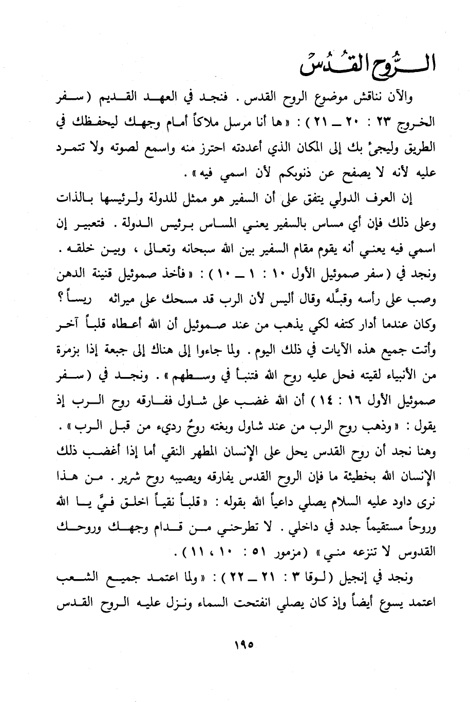 الروح القدس والآن نناقش موضوع الروح القدس. فنجد في العهد القديم (سفر الخروج 23: 20- 21) : " ها أنا مرسل ملاكا أمام وجهك ليحفظك في الطريق وليجيء بك إلى المكان الذي أعددته احترز منه واسمع لصوته ولا تتمرد عليه لأنه لا يصفح عن ذنوبكم لأن اسمي فيه ".