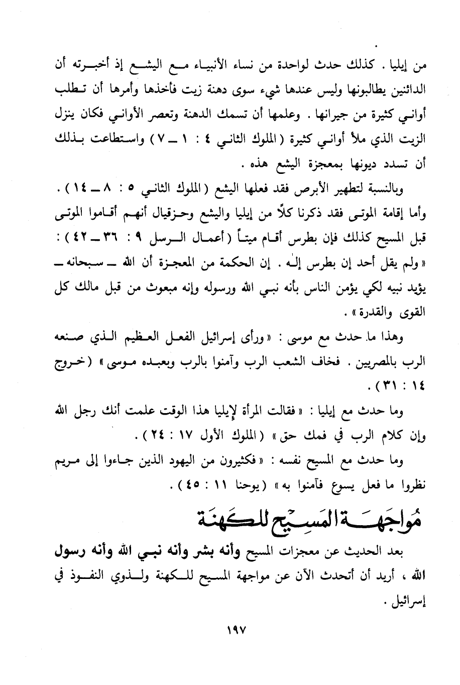 وأما إقامة الموتى فقد ذكرنا كلًّا من إيليا واليشع وحزقيال أنهم أقاموا الموتى قبل المسيح كذلك فإن بطرس أقام ميتا (أعمال الرسل 9: 36- 42) : " ولم يقل أحد إن بطرس إله. إن الحكمة من المعجزة أن الله- سبحانه- يؤيد نبيه لكي يؤمن الناس بأنه نبي الله ورسوله وإنه مبعوث من قبل مالك كل القوى والقدرة ".