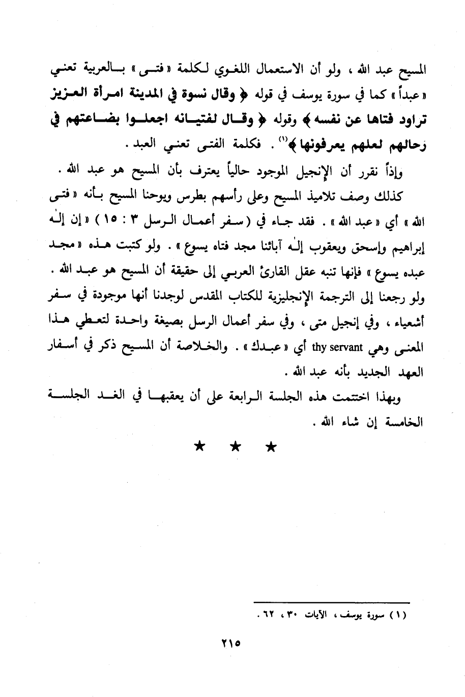 وإذًا نقرر أن الإنجيل الموجود حاليا يعترف بأن المسيح هو عبد الله.