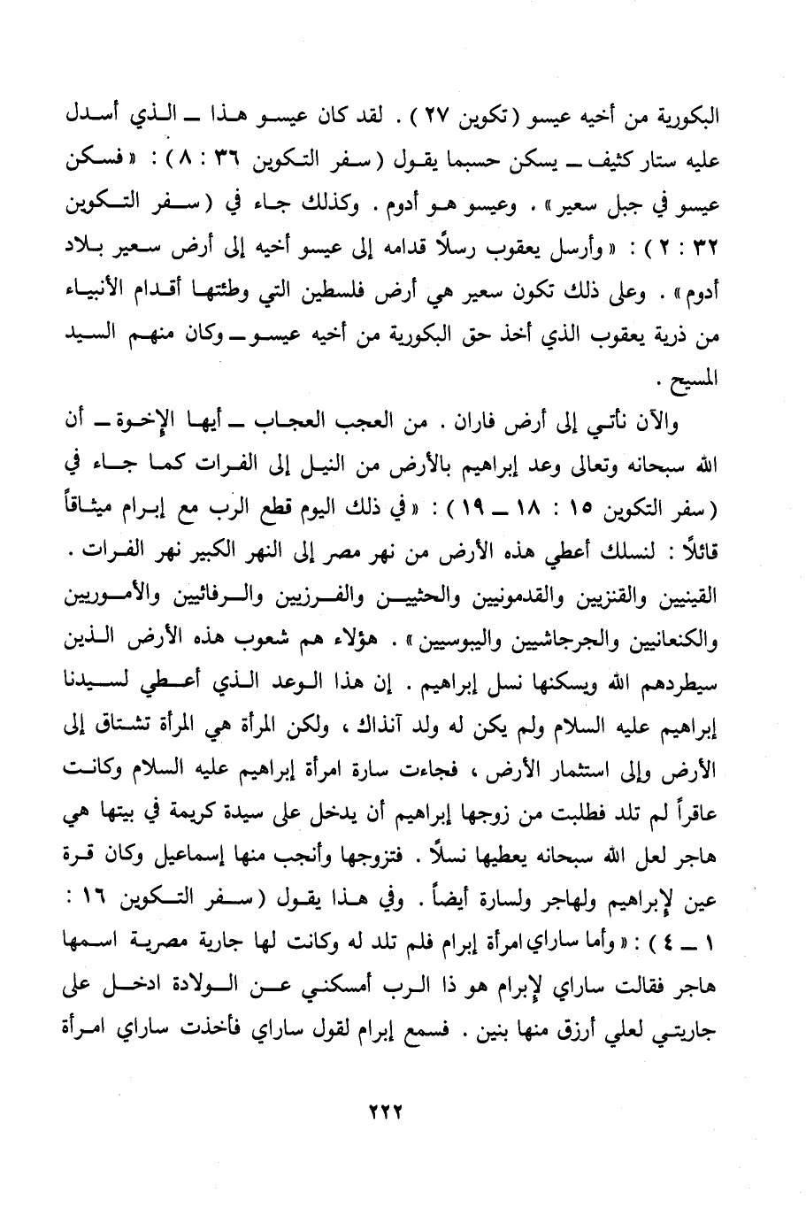 والآن نأتي إلى أرض فاران. من العجب العجاب- أيها الإخوة- أن الله سبحانه وتعالى وعد إبراهيم بالأرض من النيل إلى الفرات كما جاء في (سفر التكوين 15: 18- 19) : " في ذلك اليوم قطع الرب مع إبرام ميثاقًا قائلا: لنسلك أعطي هذه الأرض من نهر مصر إلى النهر الكبير نهر الفرات. القينيين والقنزيين والقدمونيين والحثيين والفرزيين والرفائيين والأموريين والكنعانيين والجرجاشيين واليبوسيين ". هؤلاء هم شعوب هذه الأرض الذين سيطردهم الله ويسكنها نسل إبراهيم. إن هذا الوعد الذي أعطي لسيدنا إبراهيم - عليه السلام - ولم يكن له ولد آنذاك، ولكن المرأة هي المرأة تشتاق إلى الأرض وإلى استثمار الأرض، فجاءت سارة امرأة إبراهيم - عليه السلام - وكانت عاقرًا لم تلد فطلبت من زوجها إبراهيم أن يدخل على سيدة كريمة في بيتها هي هاجر لعل الله سبحانه يعطيها نسلًا. فتزوجها وأنجب منها إسماعيل وكان قرة عين لإبراهيم ولهاجر ولسارة أيضا. وفي هذا يقول (سفر التكوين 16: 1- 4) : " وأما ساراي امرأة إبرام فلم تلد له وكانت لها جارية مصرية اسمها هاجر فقالت ساراي لإبرام هو ذا الرب أمسكني عن الولادة ادخل على جاريتي لعلي أرزق منها بنين.