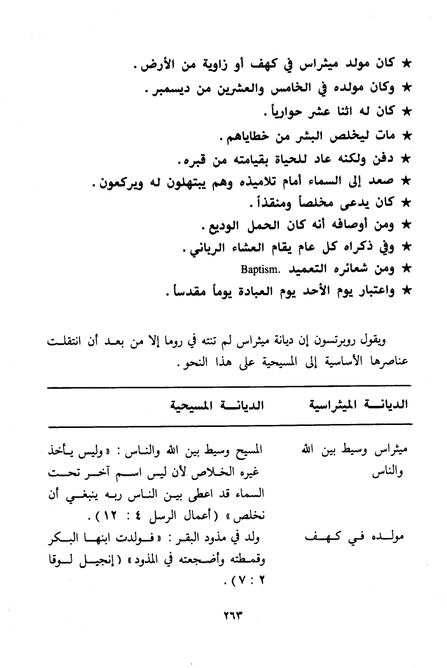 الديانة الميثراسية المسيح وسيط بين الله والناس: " وليس يأخذ غيره الخلاص لأن ليس اسم آخر تحت السماء قد أعطي بين الناس ربه ينبغي أن نخلص " (أعمال الرسل 4: 12) . ميثراس وسيط بين الله والناس. ولد في مذود البقر: " فولدت ابنها البكر وقمطته وأضجعته في المذود ". (إنجيل لوقا 2: 7) . مولده في كهف.