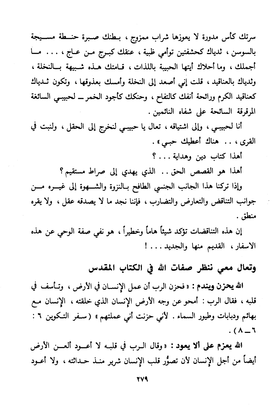 إن هذه التناقضات تؤكد شيئًا هامًا وخطيرًا، هو نفي صفة الوحي عن هذه الأسفار، القديم منها والجديد. . .!