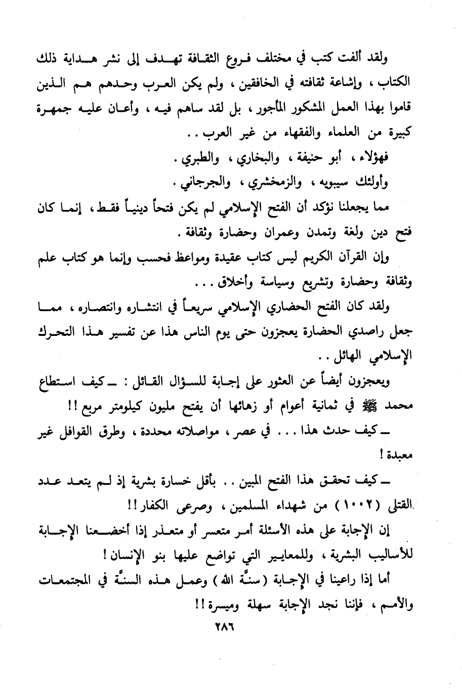 ولقد ألفت كتب في مختلف فروع الثقافة تهدف إلى نشر هداية ذلك الكتاب، وإشاعة ثقافته في الخافقين، ولم يكن العرب وحدهم هم الذين قاموا بهذا العمل المشكور المأجور، بل لقد ساهم فيه، وأعان عليه جمهرة كبيرة من العلماء والفقهاء من غير العرب. .