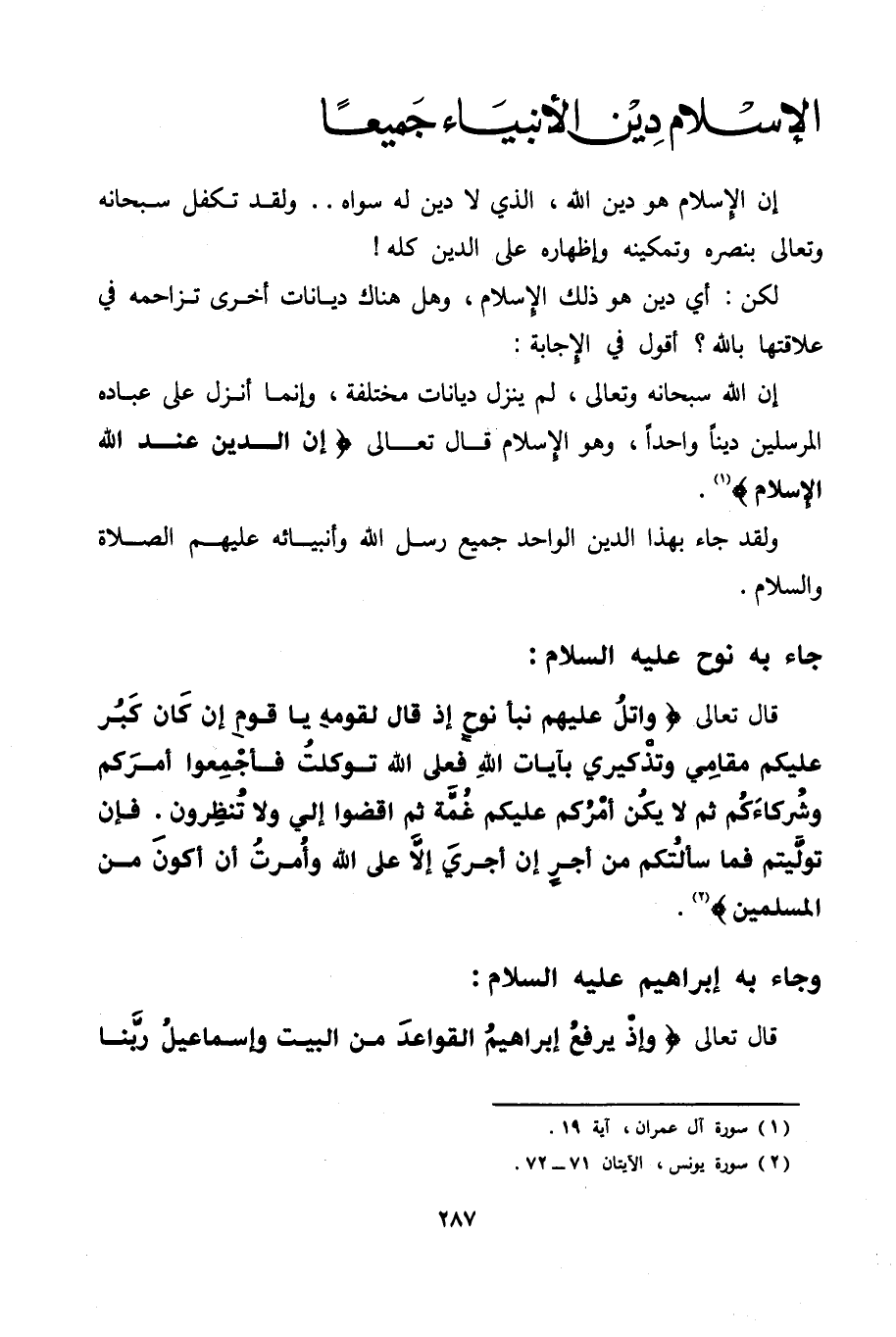(¬1) سورة آل عمران، آية 19.