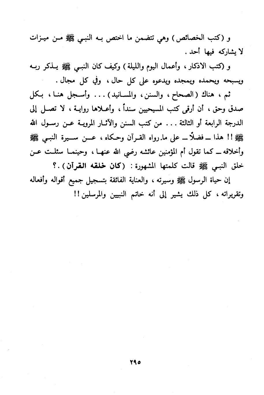 و (كتب الخصائص) وهي تتضمن ما اختص به النبي صلى الله عليه وسلم من ميزات لا يشاركه فيها أحد.