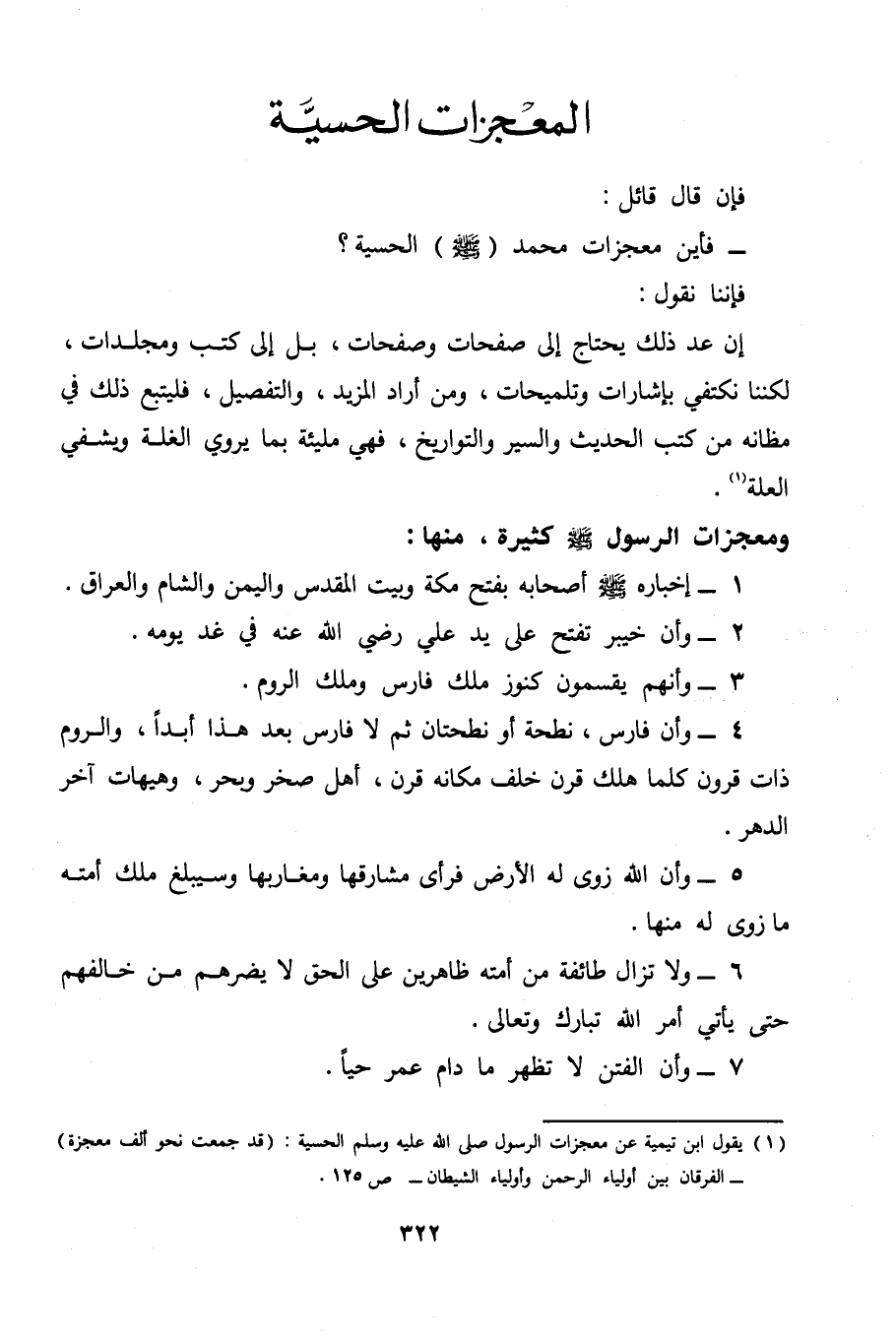(¬1) يقول ابن تيمية عن معجزات الرسول صلى الله الحسية: (قد جمعت نحو ألف معجزة) - الفرقان بين أولياء الرحمن وأولياء الشيطان - ص125.