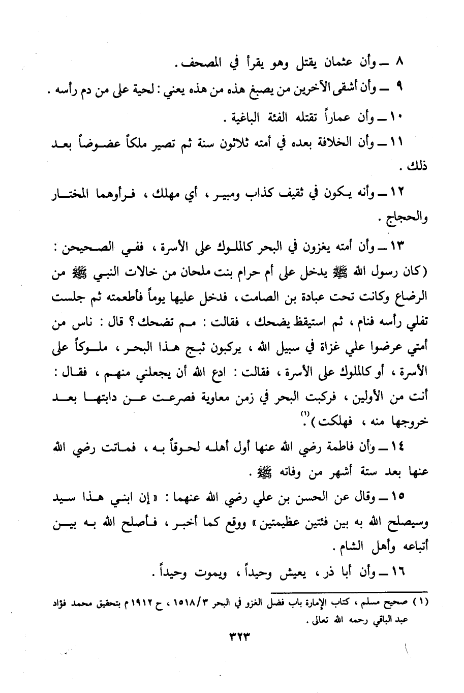 (¬1) صحيح مسلم، كتاب الإمارة باب فضل الغزو في البحر 3 / 1518، ح 1912 م بتحقيق محمد فؤاد عبد الباقي رحمه الله تعالى.