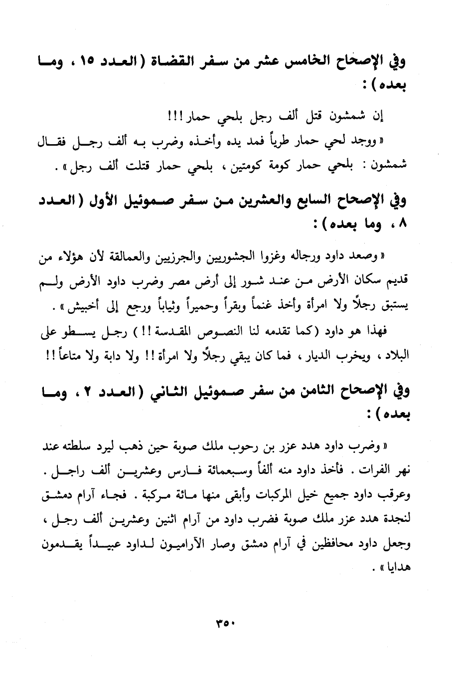 فهذا هو داود (كما تقدمه لنا النصوص المقدسة! !) رجل يسطو على البلاد، ويخرب الديار، فما كان يبقي رجلًا ولا امرأة!! ولا دابة ولا متاعًا!!