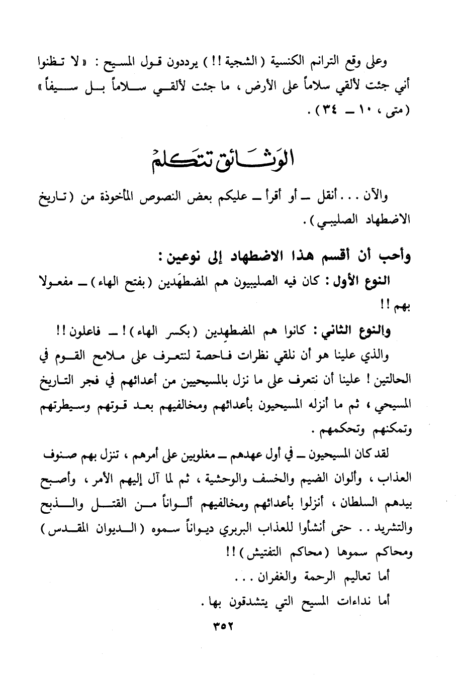 والآن. . . أنقل -أو أقرأ- عليكم بعض النصوص المأخوذة من (تاريخ الاضطهاد الصليبي) .