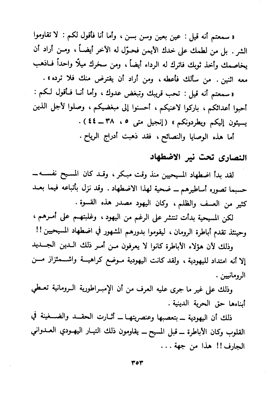 ذلك أن اليهودية -بتعصبها وعنصريتها- أثارت الحقد والضغينة في القلوب وكان الأباطرة -قبل المسيح - يقاومون ذلك التيار اليهودي العدواني الجارف!! هذا من جهة. . .