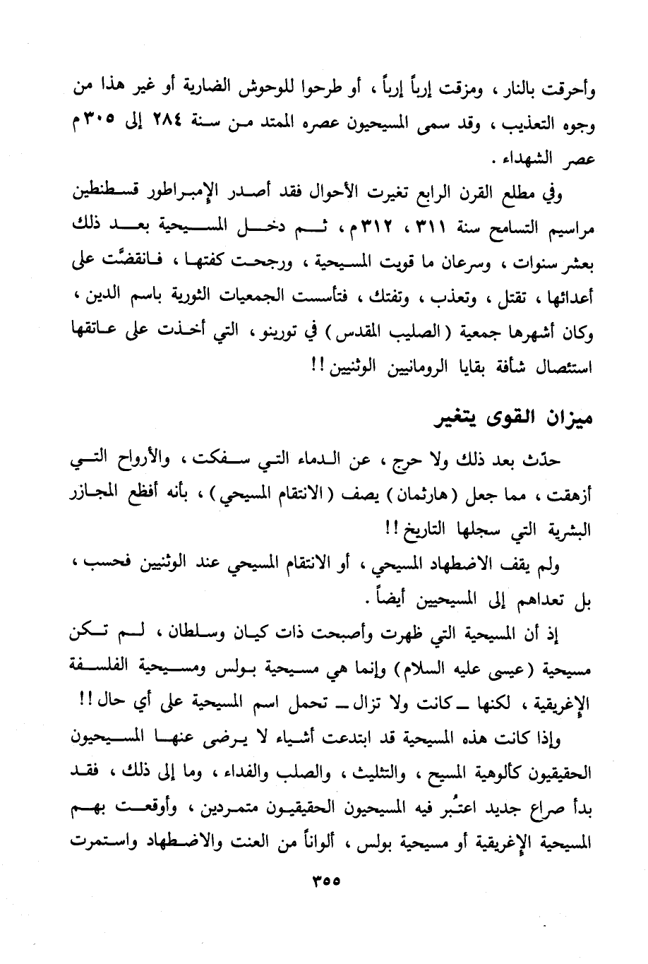 إذ أن المسيحية التي ظهرت وأصبحت ذات كيان وسلطان، لم تكن مسيحية (عيسى عليه السلام) وإنما هي مسيحية بولس ومسيحية الفلسفة الإغريقية، لكنها -كانت ولا تزال- تحمل اسم المسيحية على أي حال!!
