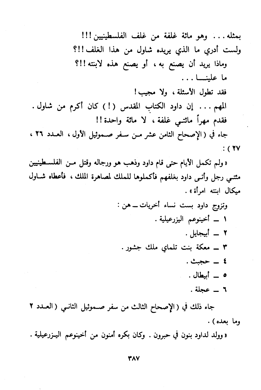 المهم. . . إن داود الكتاب المقدس (!) كان أكرم من شاول.