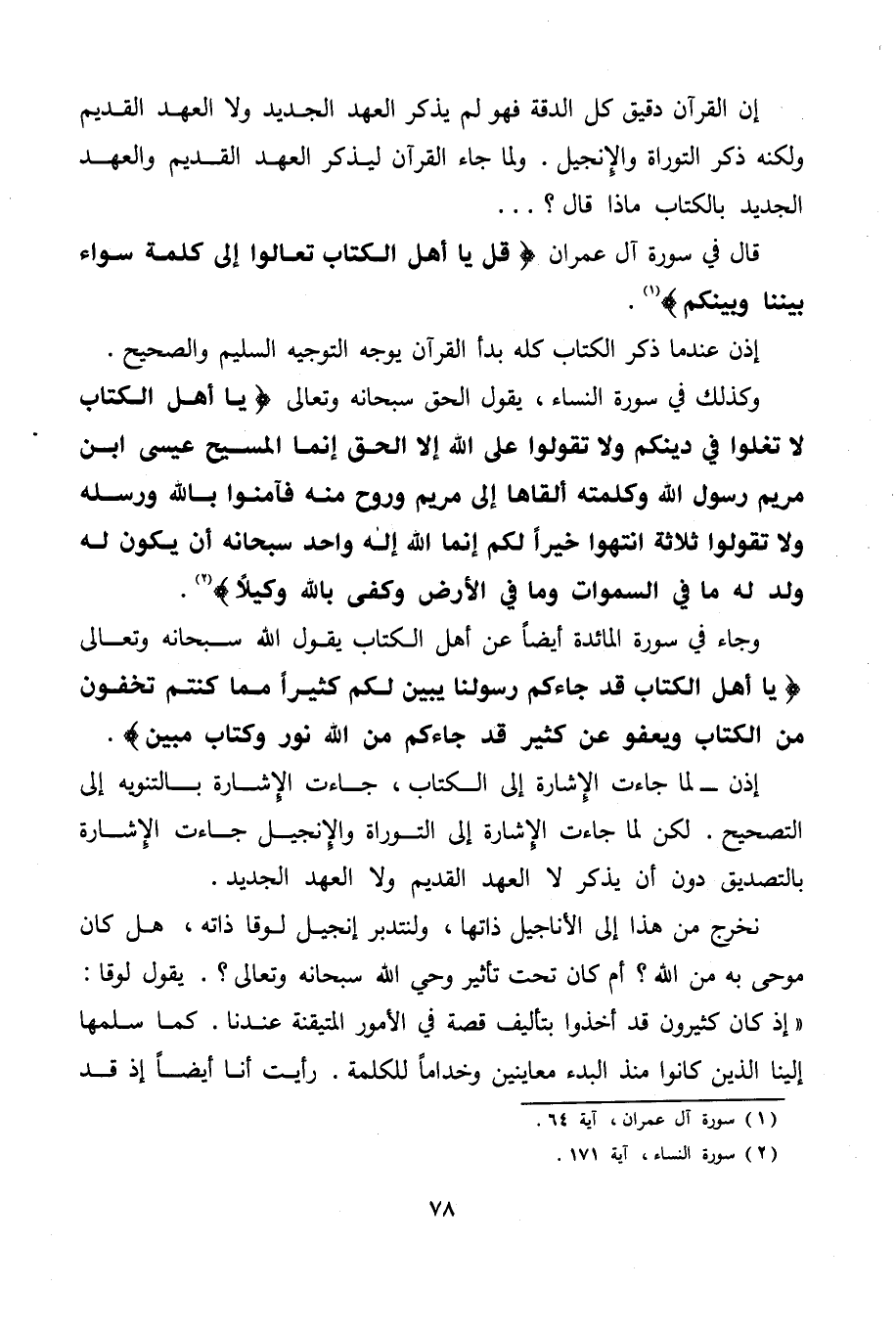 إن القرآن دقيق كل الدقة فهو لم يذكر العهد الجديد ولا العهد القديم ولكنه ذكر التوراة والإنجيل. ولما جاء القرآن ليذكر العهد القديم والعهد الجديد بالكتاب ماذا قال؟ . . .
