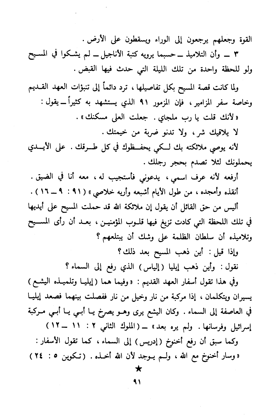 ولما كانت قصة المسيح بكل تفاصيلها، ترد دائما إلى تنبؤات العهد القديم وخاصة سفر المزامير، فإن المزمور 91 الذي يستشهد به كثيرا- يقول:
