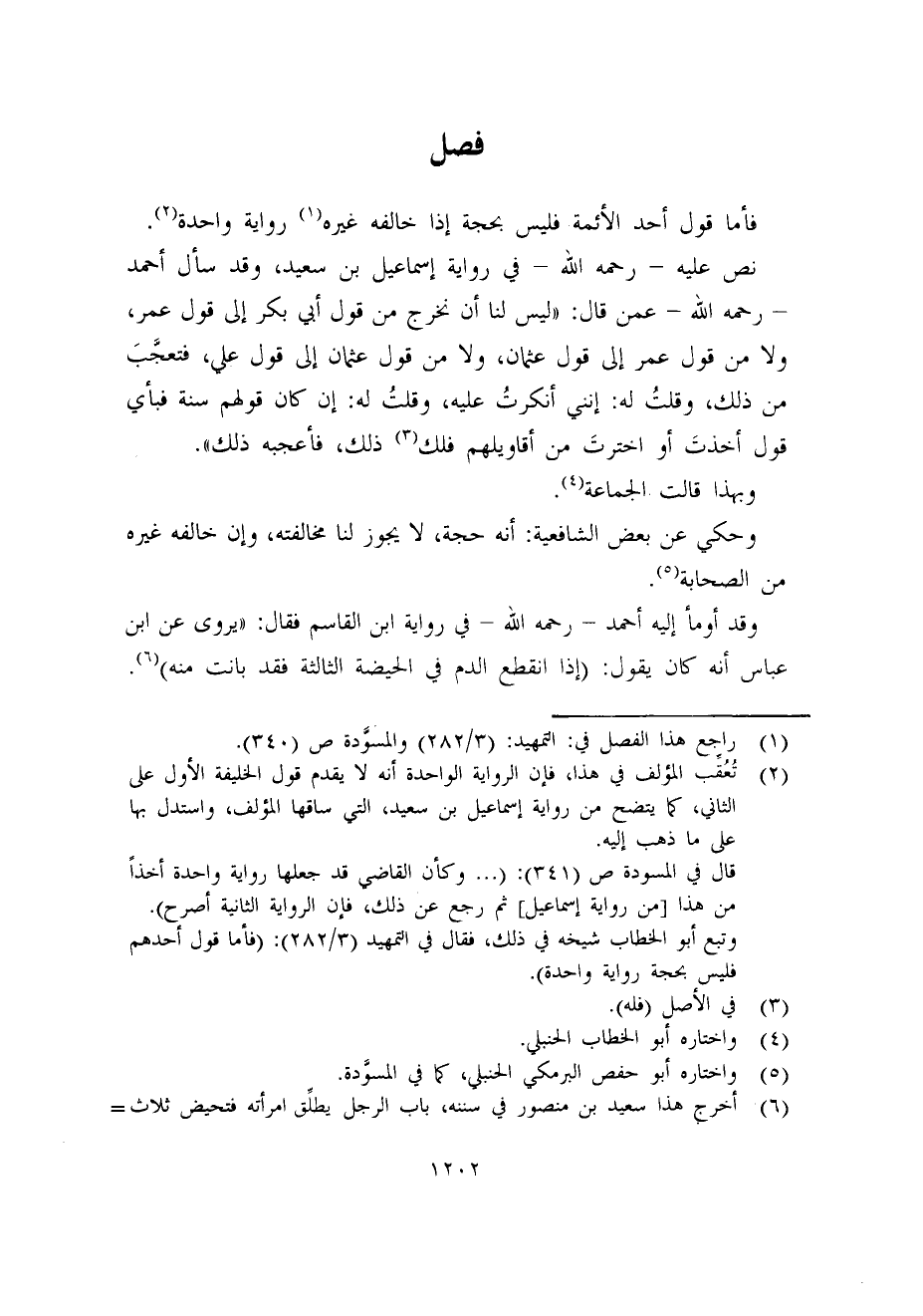 (1) راجع هذا الفصل في: التمهيد: (3/282) والمسوَّدة ص (340) .
