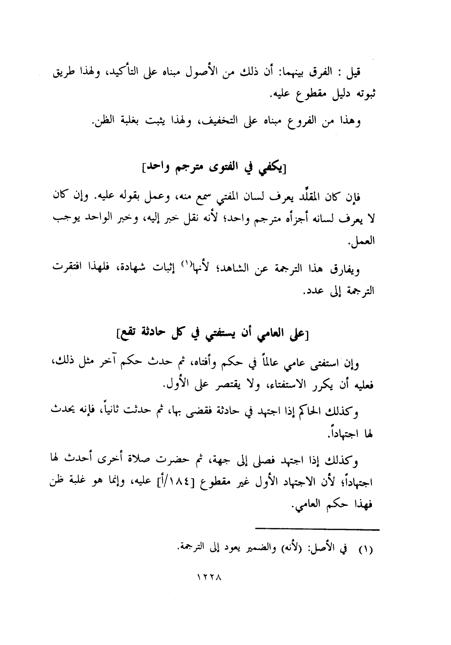 ويفارق هذا الترجمة عن الشاهد؛ لأنها (1) إثبات شهادة، فلهذا افتقرت الترجمة إلى عدد.