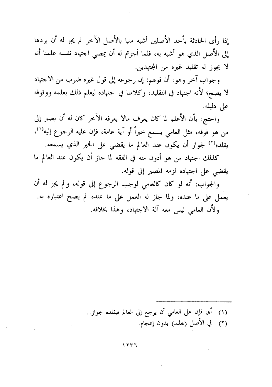 (1) أى فإن على العامي أن يرجع إلى العالم فيقلده لجواز..