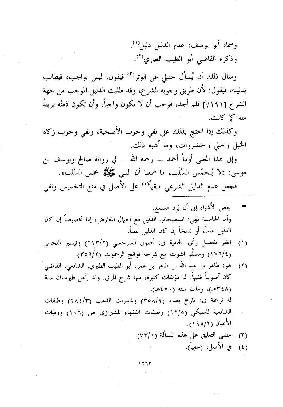 (2) هو: طاهر بن عبد الله بن طاهر بن عمر، أبو الطيب الطبري. الشافعي، القاضي كان أصولياً فقيهاً. له مؤلفات كثيرة، منها شرح المزني. ولد بآمل طبرستان سنة (348هـ) ، ومات سنة (450هـ) .