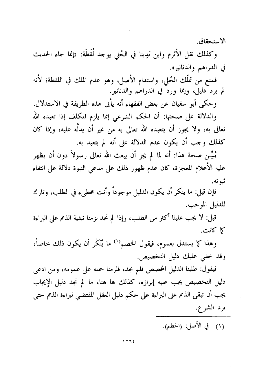 فيقول: طلبنا الدليل المخصص فلم نجد، فلزمنا حمله على عمومه، ومن ادعى دليل التخصيص يجب عليه إبرازه، كذلك ها هنا، ما لم نجد دليل الايجاب يجب أن تبقى الذمم على البراءة على حكم دليل العقل المقتضي لبراءة الذمم حتى يرد الشرع.