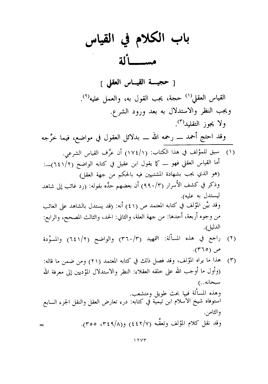 (1) سبق للمؤلف في هذا الكتاب: (1/174) أن عرَّف القياس الشرعي.