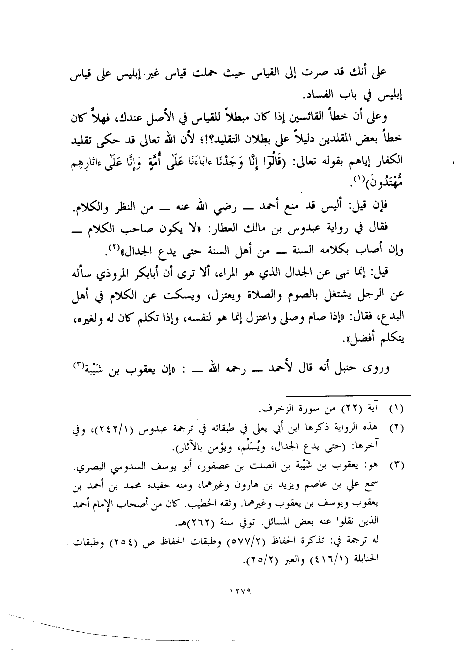 وعلى أن خطأ القائسين إذا كان مبطلاً للقياس في الأصل عندك، فهلاَّ كان خطأ بعض المقلدين دليلاً على بطلان التقليد؟!؛ لأن الله تعالى قد حكى تقليد الكفار إياهم بقوله تعالى: (قَالوا إنَّا وَجَدْنَا ءابَاءَنَا عَلَى أمَّةٍ وَإنَّا عَلَى ءاثارِهِم مُّهْتَدُونَ) (1) .