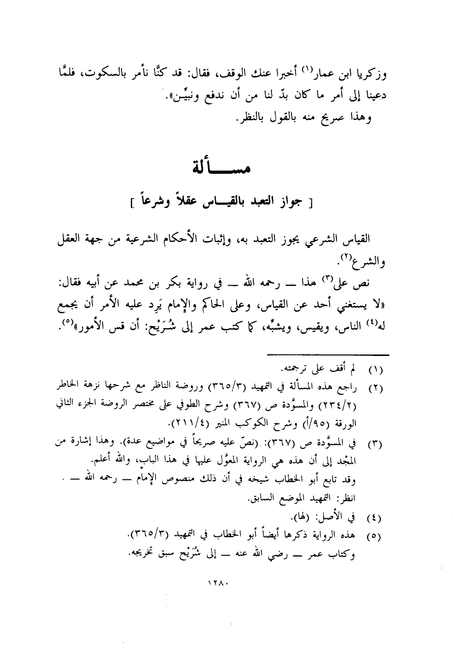 (2) راجع هذه المسألة في التمهيد (3/365) وروضة الناظر مع شرحها نزهة الخاطر (2/234) والمسوَّدة ص (367) وشرح الطوفي على مختصر الروضة الجزء الثانى الورقة (95/أ) وشرح الكوكب المنير (4/211) .