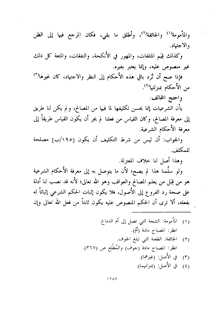 والجواب: أن ليس من شرط التكليف أن يكون [195/ب] مصلحة للمكلف.